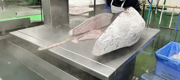 冷凍マグロの加工